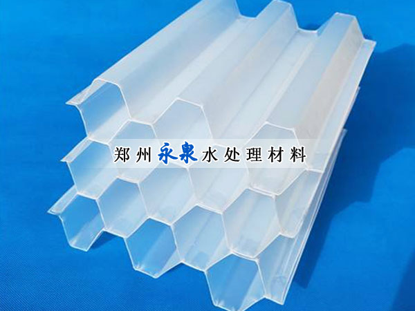 六角形蜂窩填料材質有聚丙烯(PP)聚氯乙烯(PVC)乙丙共聚和玻璃鋼(FRP)四種。組裝形式的斜管和直管兩種形式。